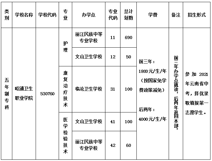 2021年昭通衛生職業學院招生簡章(三年制、五年制大專、三年制中專)