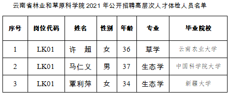 根據(jù)《云南省林業(yè)和草原科學院2021年公開招聘高層次人才公告》有關規(guī)定,現(xiàn)將體檢工作有關事項通知如下: