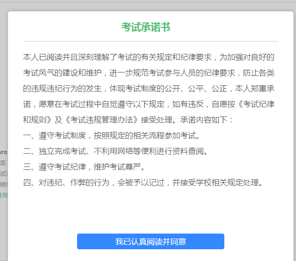6.閱讀考試承諾書。點擊“我已認真閱讀并同意”。