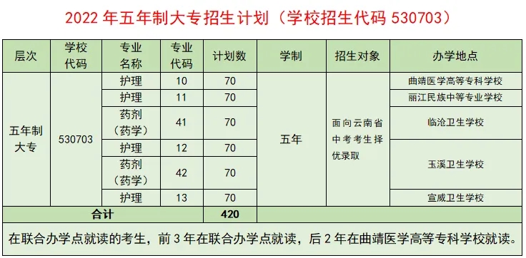 曲靖醫(yī)學(xué)高等專科學(xué)校2022年招生計(jì)劃