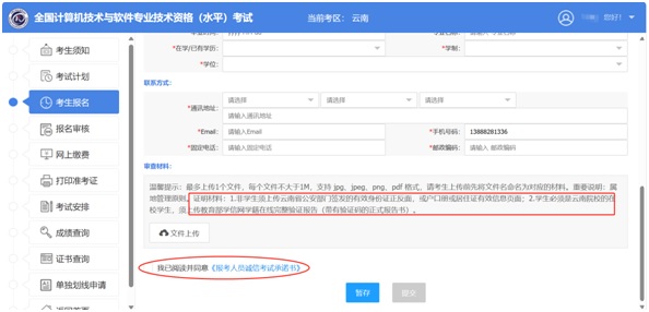 3、按要求提交屬地證明材料,閱讀承諾書并勾選已讀,方可提交報名信息,等待審核: