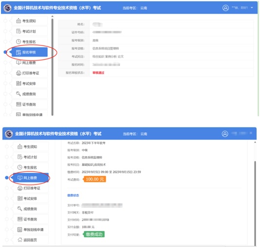 3、報考人員查看報名審核通過以后,進入網上繳費環節。