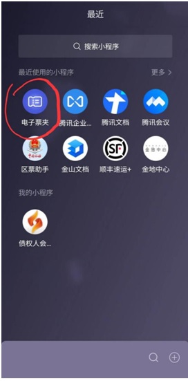 2、注冊之后,點小程序中間的“票夾”按鈕,就可以查看和下載已經開出的電子票: