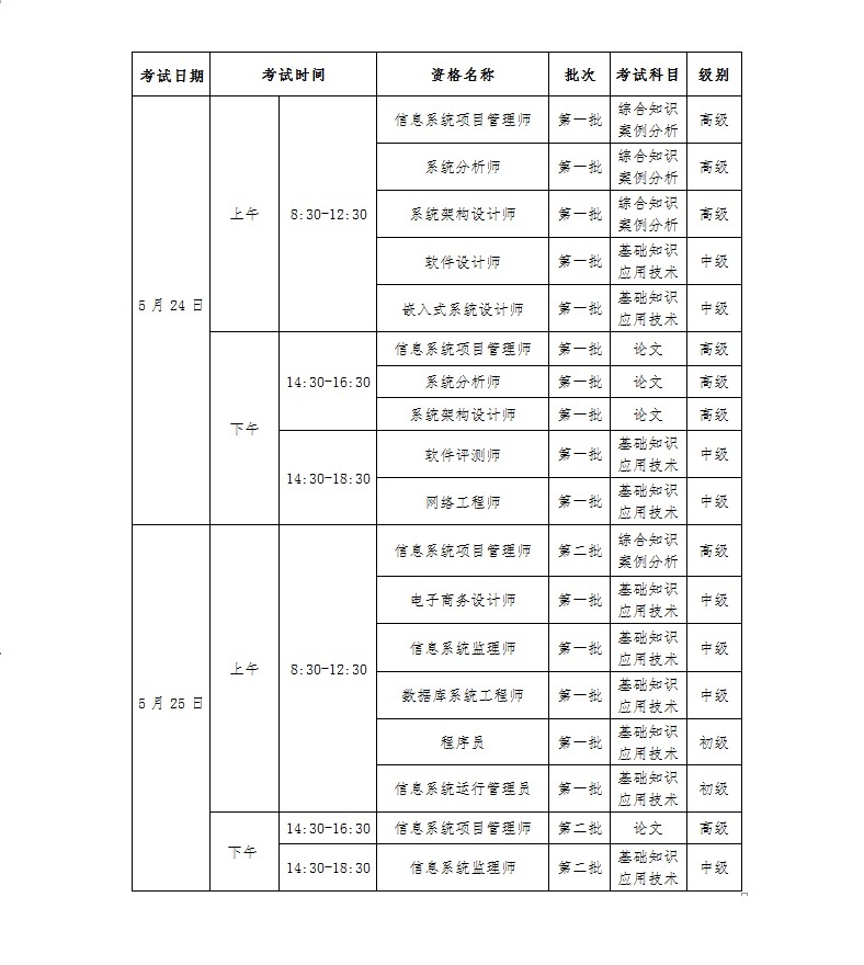 按照工業和信息化部教育與考試中心《關于2025年上半年計算機技術與軟件專業技術資格(水平)考試批次安排的通知》(工信教〔2025〕16號)文件精神,2025年上半年計算機技術與軟件專業技術資格(水平)考試云南考區考試批次安排如下: