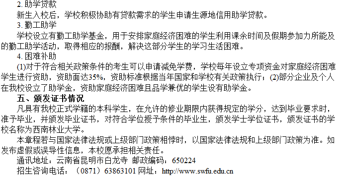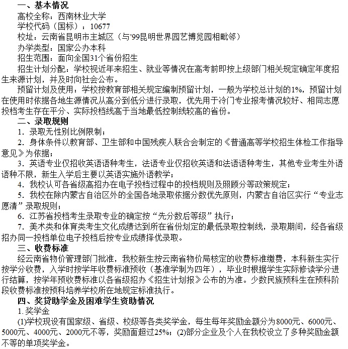 西南林業大學2015年本科招生章程