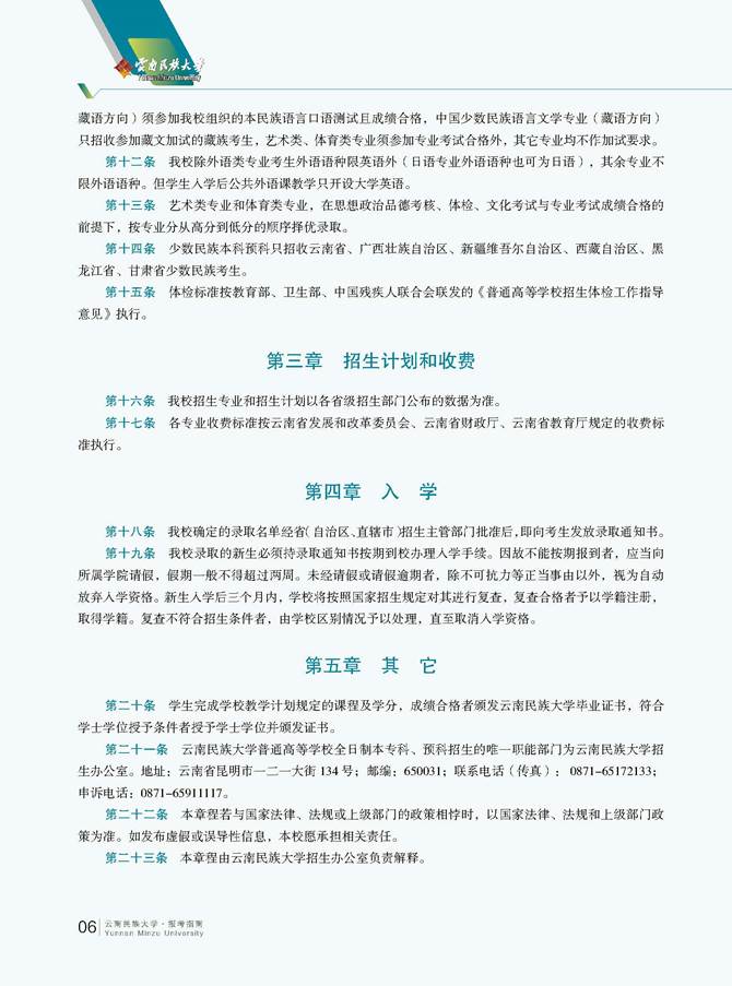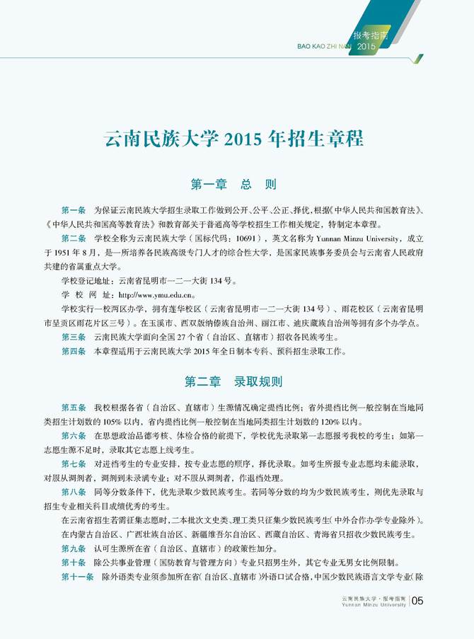 云南民族大學2015年普高本專科招生計劃(云南省)