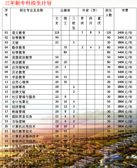 學(xué)校堅持以服務(wù)為宗旨,就業(yè)為導(dǎo)向的辦學(xué)思路,立足德宏,面向滇西,輻射緬甸,服務(wù)德宏經(jīng)濟社會發(fā)展和瑞麗國家重點開發(fā)開放試驗區(qū)建設(shè),為地方培養(yǎng)面向基層、生產(chǎn)服務(wù)一線、具有良好道德品質(zhì)、勇于創(chuàng)新和高度社會責(zé)任感、理論功底扎實、實踐能力突出的高素質(zhì)應(yīng)用型人才。