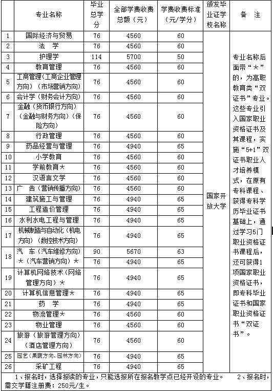 ☆報名手續:報名時,須交驗有效畢業證書原件;提交身份證和畢業證書復印件各1份,免冠數碼電子照片1份;填寫《國家開放大學開放教育學生報名登記表》和《入學資格承諾書》;交納學籍注冊建檔費。其中: