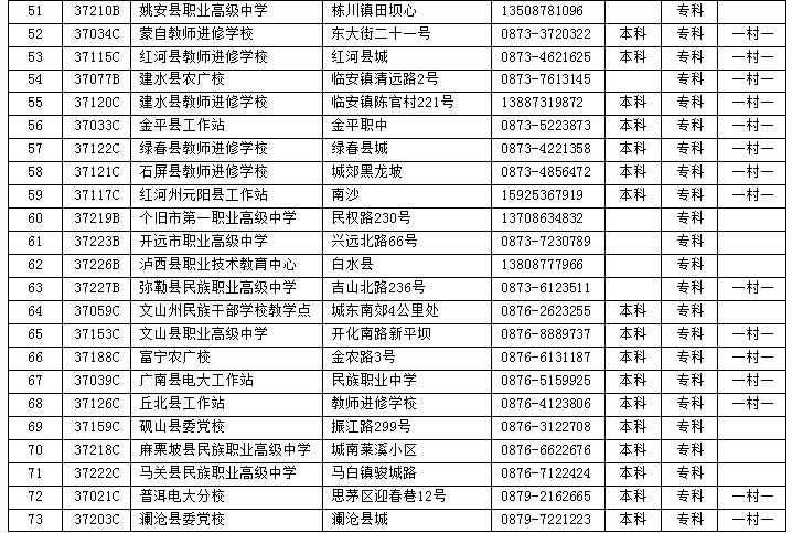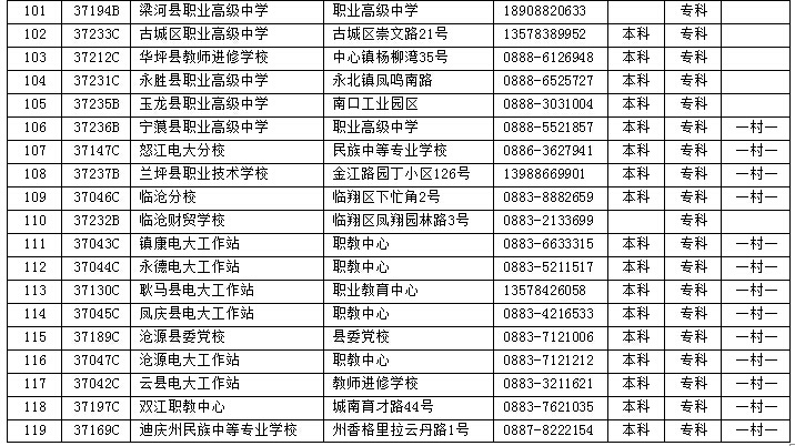 一村一名大學生計劃”專科專業13個