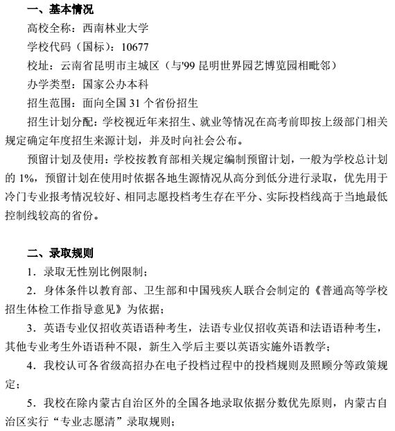 西南林業(yè)大學2024年普通本科分專業(yè)招