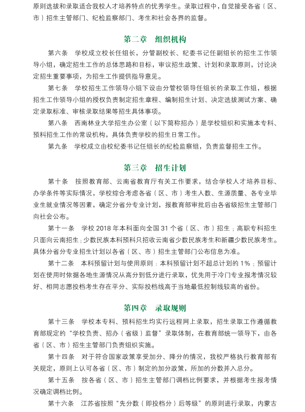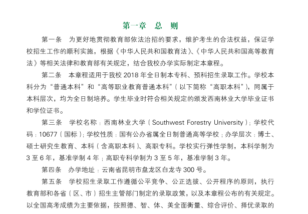 西南林業大學2018年本專科招生章程