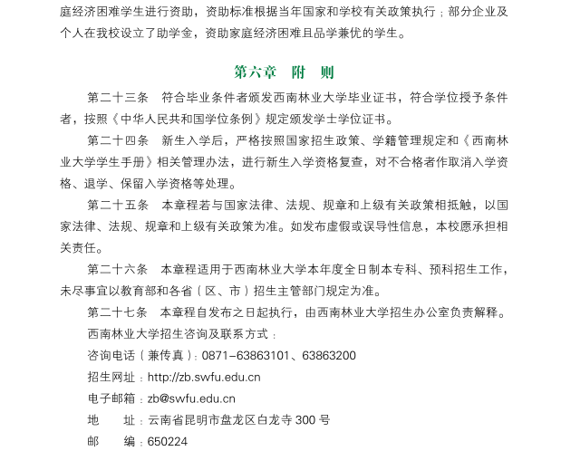 2023年西南林業大學本科招生章程