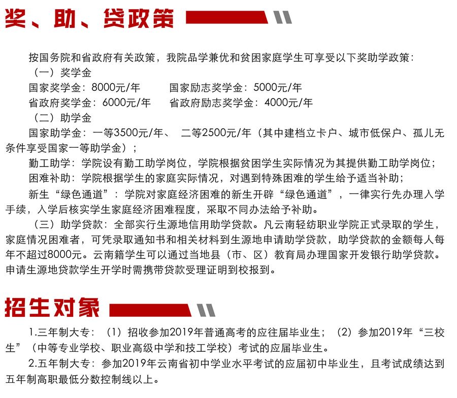 云南輕紡職業(yè)學(xué)院2019年招生簡(jiǎn)章