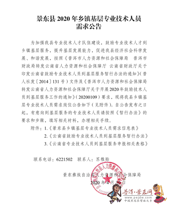 景東縣2020年鄉鎮基層專業技術人員需求公告