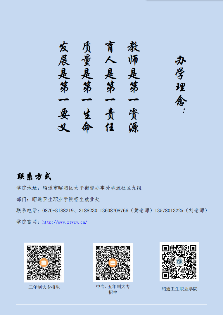 2020年昭通衛生職業學院招生簡章(五年制)