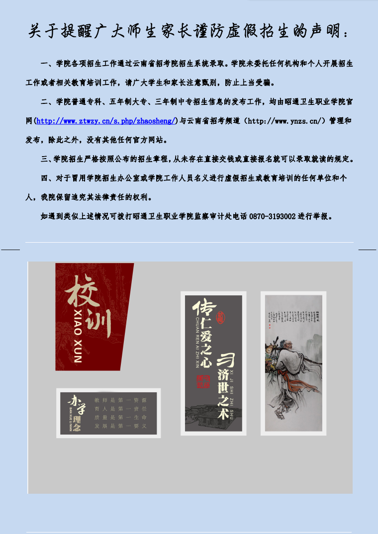 2020年昭通衛生職業學院招生簡章(中專)